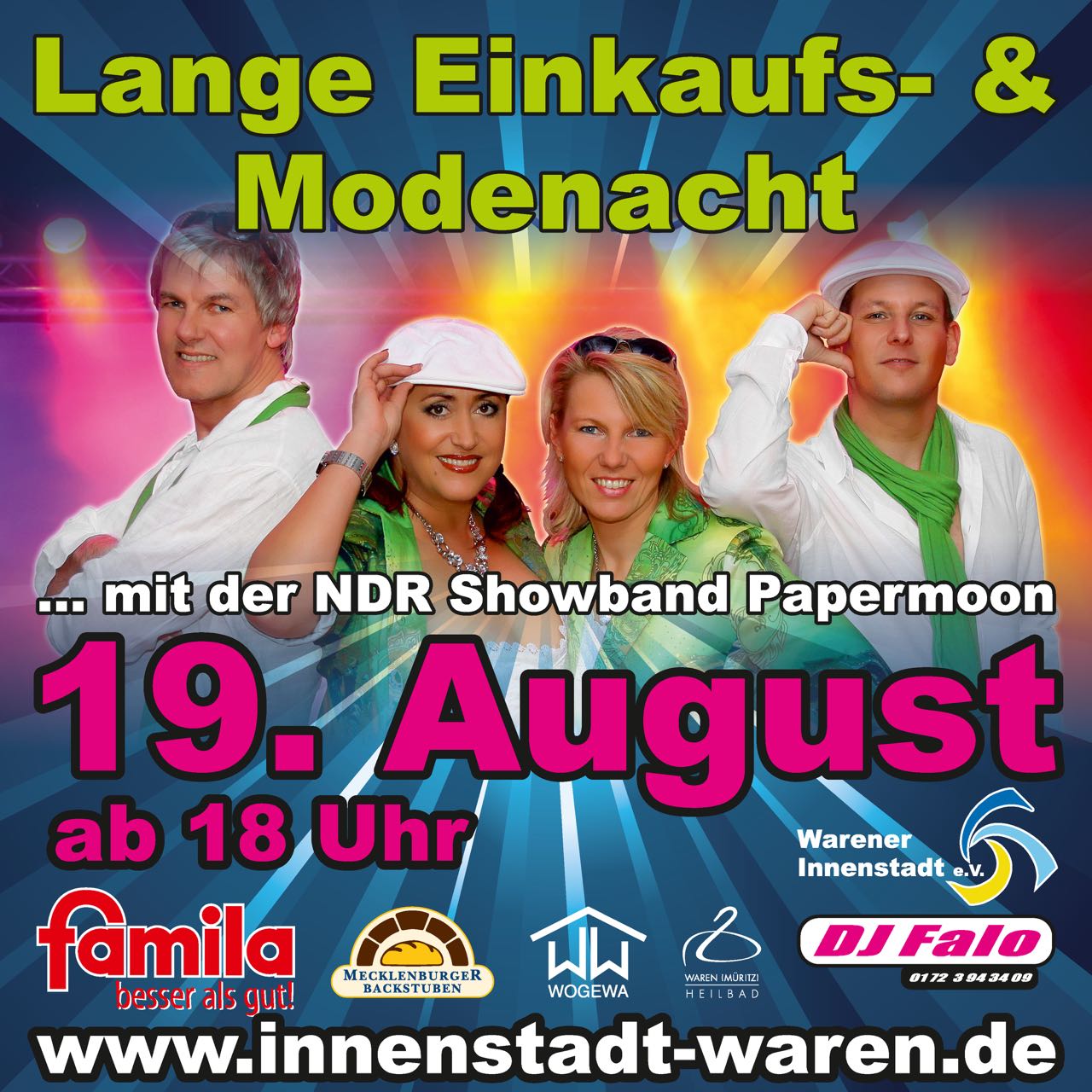 Das Wochenende ist schon wieder in Sicht und mit ihm die zweite Lange Einkaufsnacht des Warener Innenstadtvereins. Und die hat es in sich. Insgesamt haben die Veranstalter acht Modenschauen in der Langen Straße, auf dem Neuen Markt und in der Friedensstraße geplant.