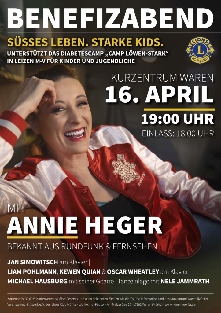 Hier heißt es, schon mal rechtzeitig Karten sichern: Das Hilfswerk des Lions Club Müritz lädt am 16. April ab 19 Uhr zu einer Benefizveranstaltung in das Kurzentrum Waren ein. Die…