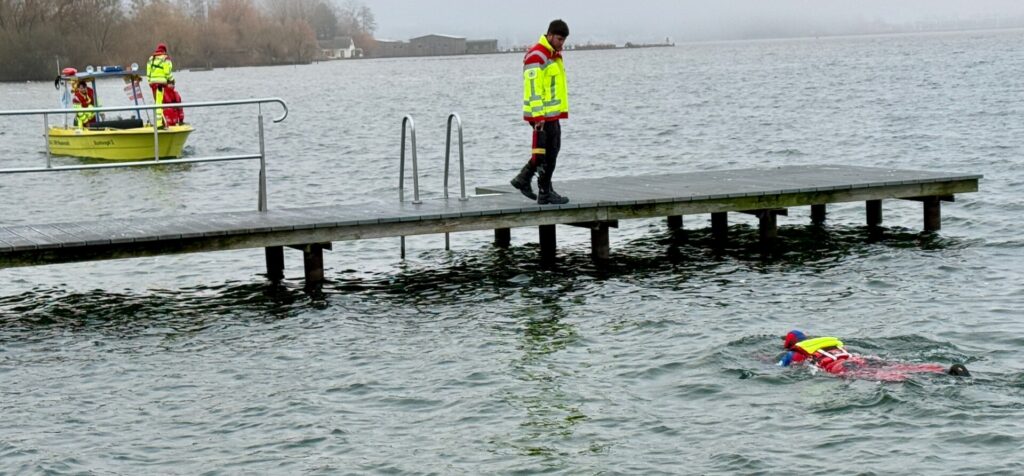 Mit einem Großaufgebot an Rettungskräften von Feuerwehr, DRK-Wasserwacht und Wasserschutzpolizei wird seit etwa 40 Minuten das Warener Volksbad abgesucht. Auslöser ist ein Paar Schuhe, vermutlich Herren-Sneaker der Größe 42/43. Die…