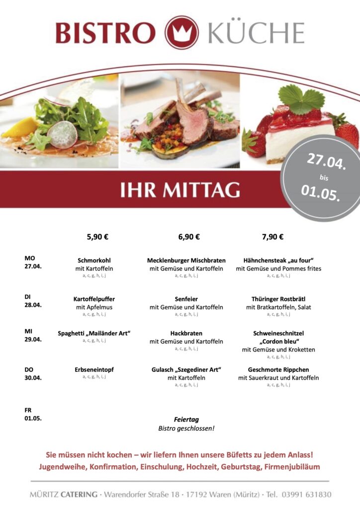 ᵂᴱᴿᴮᵁᴺᴳ | Der aktuelle Speiseplan für die Bistro-Küche in Waren