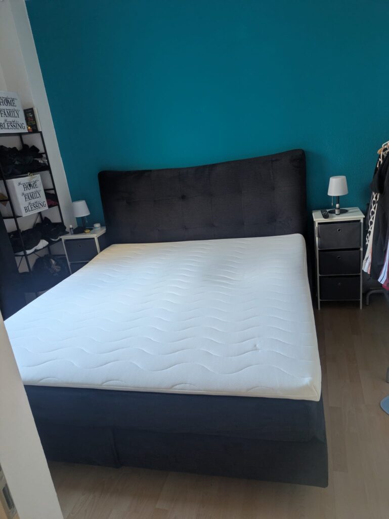 Zum Verkauf steht ein sehr hochwertiges und nahezu neues Boxspringbett in der größe 180/200cm und in einer komfortablen Höhe von 60 cm.Es wurde kaum benutzt und befindet sich in einem hervorragenden Zustand. Nur allein der Topper kostet 300 Euro.Ich gebe das Bett für 550 Euro ab.
