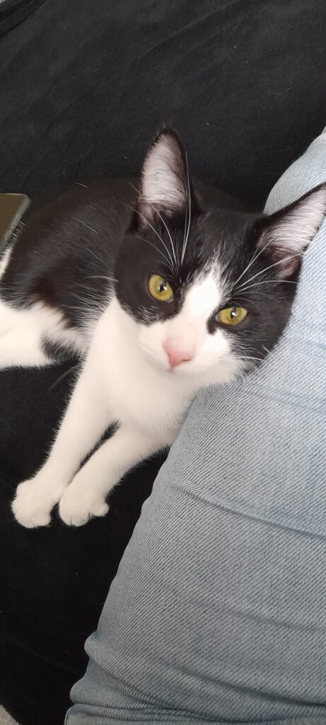 Sie ist gerade einmal 9 Monate und schwarz weiß. Sie ist gechipt und relativ zutraulich