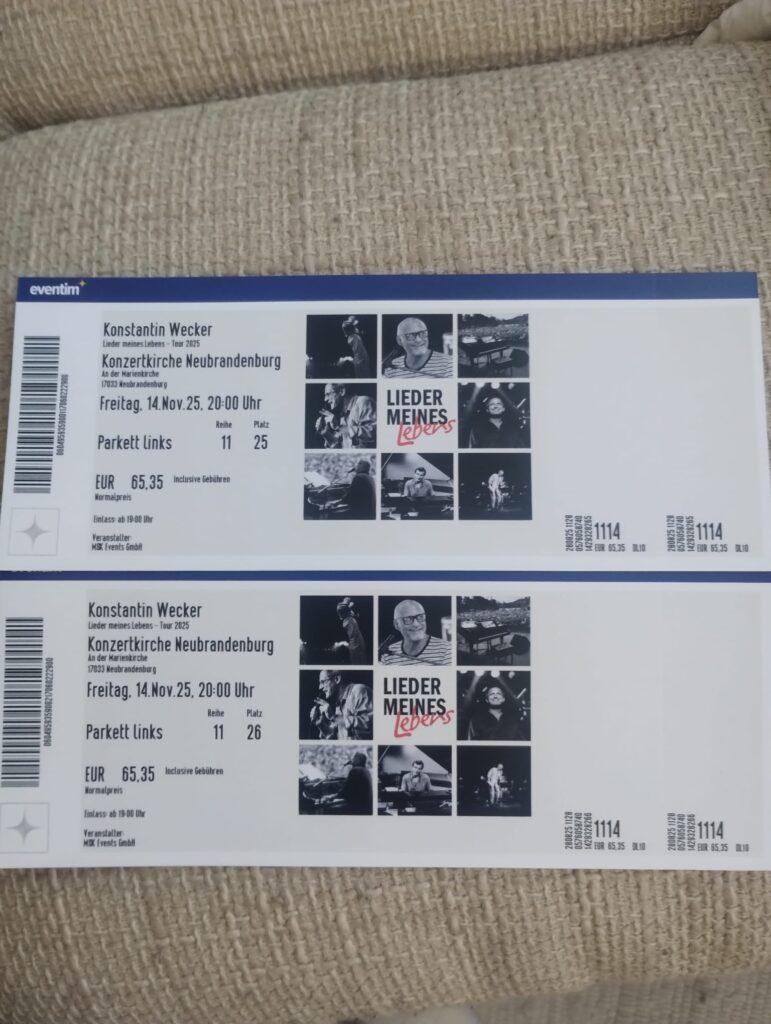 WeiterlesenLeider sind wir am 14.11. schon anderweitig verplant und müssen die Konzertkarten schweren Herzens verkaufen. Man kann eben nur auf einer Hochzeit tanzen. Also wer Zeit und Interesse hat –