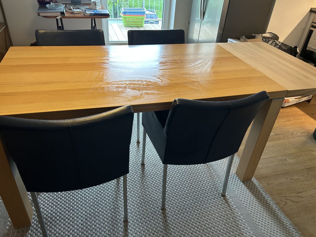 WeiterlesenMassivholzküchentisch. Länge 1,60 m, ausziehbar auf 2,10 m, Breite 0,90 m, Höhe 0,77 m. Inklusive vier hochwertiger Ledersessel. Abzuholen in Waren. Verkaufsgrund: Umzug.