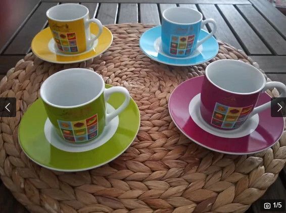 Weiterlesen8 teiliges Espresso Tassen-Set, bestehend aus 4 Espresso Tassen mit Untertassen. Weimar Porzellan. Unbenutzt. Vitrinenstücke. Sehr schöne Farbkombination und auch ein sehr schönes Sammlerobjekt. VB 35€. Limitierte Auflage. Für weitere