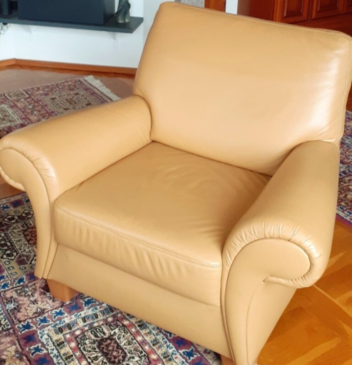 WeiterlesenBiete sehr gut erhaltene Wohnzimmer-Sitzgarnitur, Dreisitzer, Zweisitzer, Sessel. Leder camelfarben Federkern Holzbeine. Selbstabholung 250 €