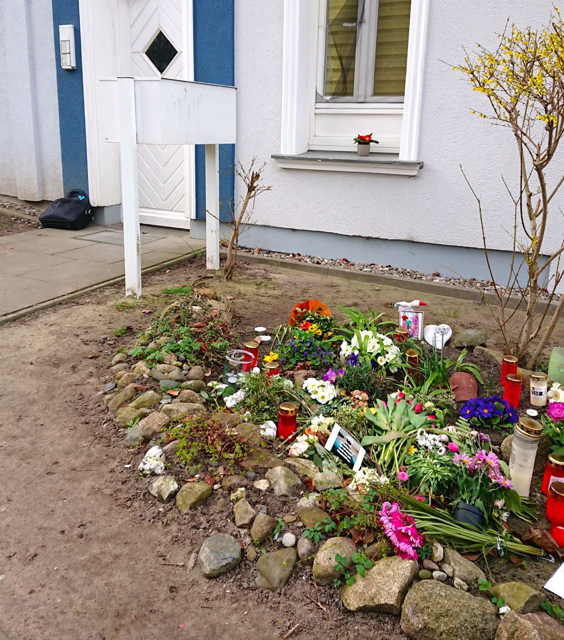 Maria wohnte in einem Mehrfamilienhaus, das früher ein Ferienheim der Wismut war. Das Haus liegt an einer schmalen und eher ruhigen Straße unweit vom Zentrum. Vor dem Haus wurden Blumen, Trauerlichter und Gedenkutensilien abgelegt. „Das ist sehr würdig“, sagte eine Einwohnerin beim Vorbeigehen.