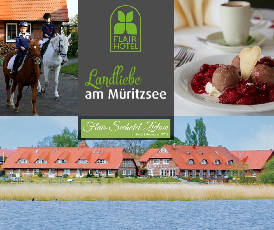 Das Flair Seehotel Zielow ist ein 3*superior Hotel mit großem Außenbereich, Wellnessbereich mit Schwimmbad, eigener Badestelle und angeschlossenem Reitstall. Unser Restaurant bietet frische, regionale und saisonale Gerichte, norddeutsch geprägt mit mediterranem Einfluss. Wir liegen inmitten herrlicher Natur umgeben von Wiesen und Feldern mit unverbautem Blick auf den See, direkt am Südufer der Müritz.