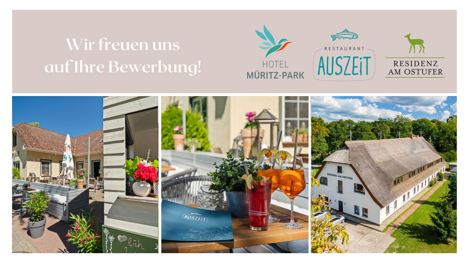 Im Gutsdorf Boek (Rechlin) liegen unsere zwei Hotels das HOTEL MÜRITZ-PARK mit dem dazugehörigen RESTAURANT AUSZEIT und das reetgedeckte Hotel RESIDENZ AM OSTUFER. Unsere Gäste lieben die Natur, die Nähe zum Nationalpark und die vielen umliegenden Seen. Die Hotels sind familiengeführt und verfügen über 48 Zimmer