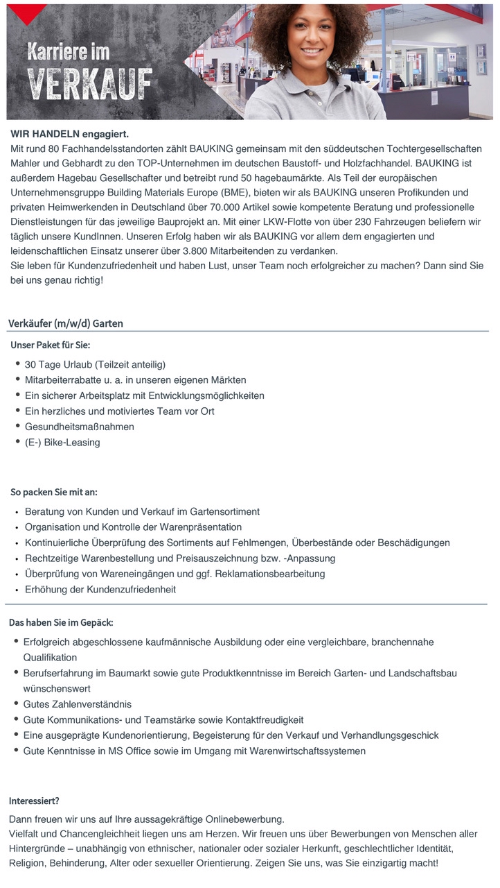 Verkäufer / Quereinsteiger Verkauf (m/w/d) in Teilzeit