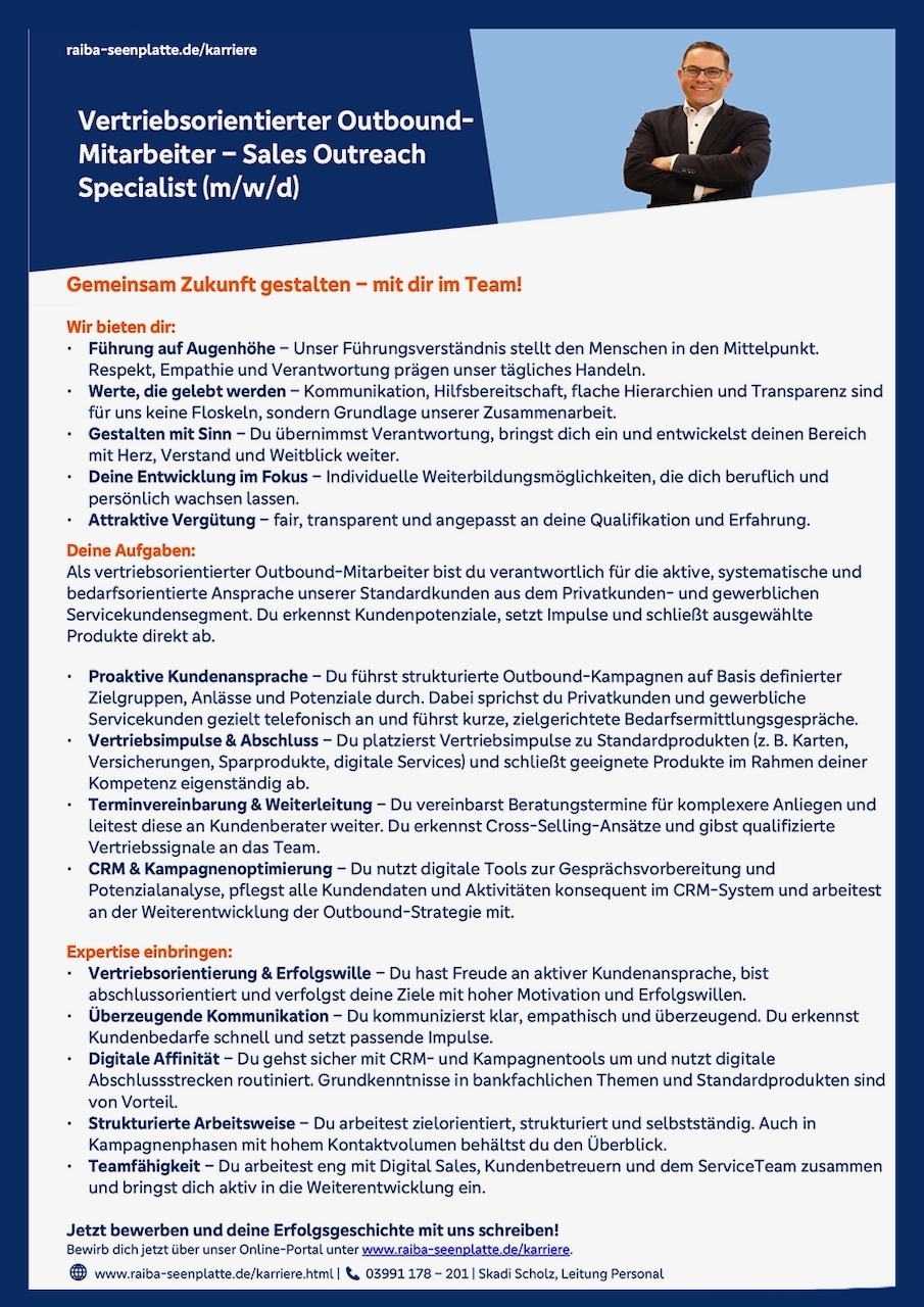 Vertriebsorientierter Outbound-Mitarbeiter – Sales Outreach Specialist (m/w/d)