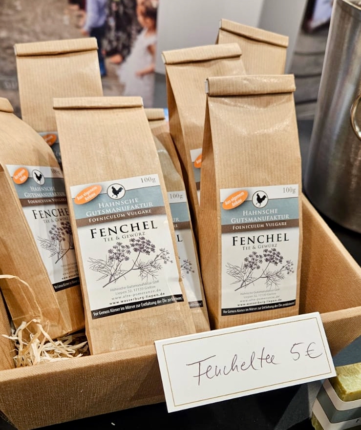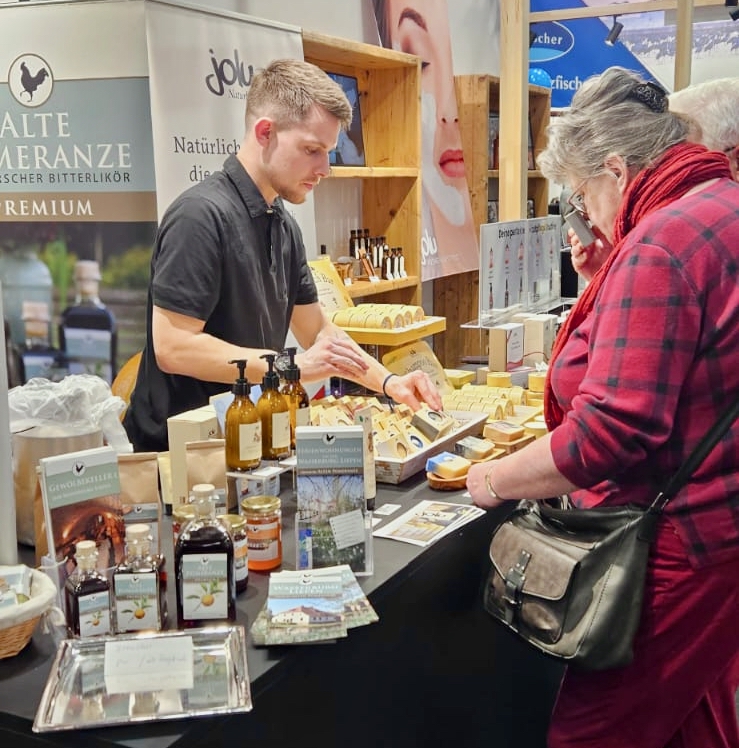 So basiert die hochwertige Kosmetik und Hautpflege von Jolu aus Dargun auf natürlichen und oft regionalen Ingredienzien, die – passend zur Jahreszeit – selbst bei trockener und rissiger Haut helfen. Auf heimische Pflanzen setzt auch die Hahnschen Gutsmanufaktur. Sie zeigt neben den bekannten Produkten aus der Bitterorange ihr neues Sortiment (Salz, Tee und Seife), basierend auf Fenchel aus eigenem Anbau.